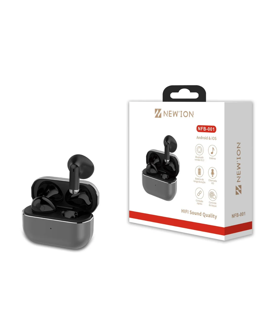 🎧 Fone de Ouvido NewIon - NFB001** O **NewIon NFB001 é a escolha perfeita para quem busca qualidade sonora, conforto e estilo em um único produto. Com design moderno e acabamento leve, ele oferece uma experiência auditiva imersiva, ideal para ouvir músicas, assistir filmes, jogar ou atender chamadas no dia a dia.